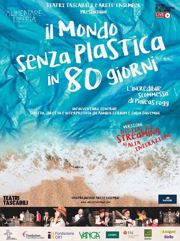 Lo spazio di Alimentare Libertà, dal 22 al 27 febbraio 2021, è strato teatro del live digital streaming, riadattamento ad alta interazione dello spettacolo originario, per gli studenti piemontesi in DAD. Rivisitando il libro di Jules Verne, un contemporaneo Mister Fogg accetterà la sfida di liberare il mondo dalla plastica in soli 80 giorni: una riflessione sul riciclo, sulle possibilità di un pensiero ambientalista e sulle nuove tecnologie, immaginando un mondo plastic free.